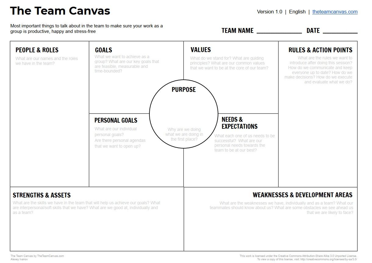 In quest'ottica si possono utilizzare le pratiche del Business Model Canvas al team creando un Team Model Canvas, ovvero una descrizione ragionata e condivisa dai membri del team e dai rispettivi responsabili dei seguenti aspetti:
